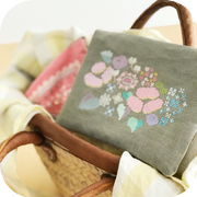 日々の生活の息抜きにと、出会った刺繍。楽しい刺繍のひとときを、一緒に過ごしたいと思っています。小さなお子様連れの方もOKです。一緒に刺繍を楽しみましょう。